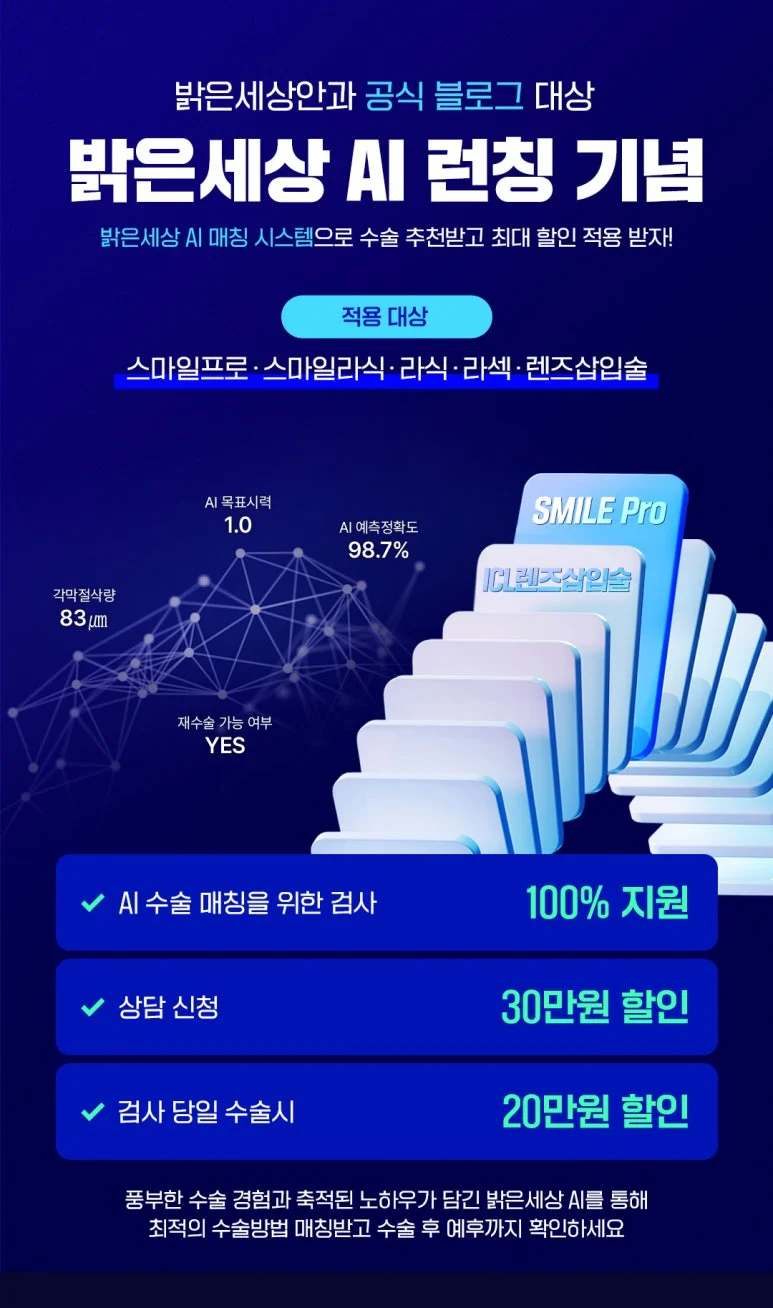 시력교정술 도입 1세대 안과로 투데이라섹, 스마일라식, 렌즈삽입술(전방, 후방)